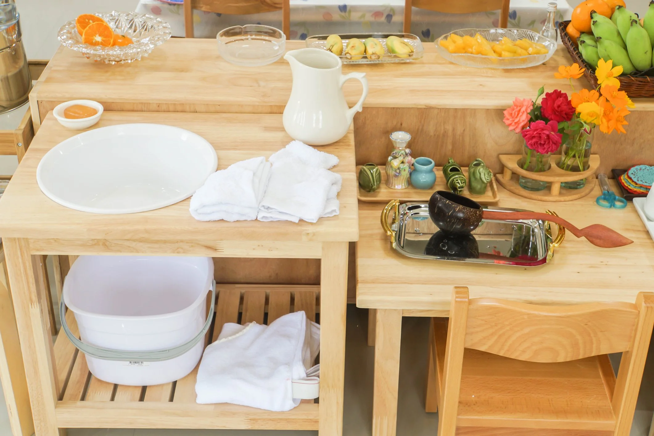 The Montessori Parent-Toddler Programme is catered to children from approximately 18 months (or steady walkers) to 3 years old, where they can use child-sized equipment and carefully crafted Montessori materials to develop independence, concentration and a love for learning. Every area in our centre reflects beauty and calmness.